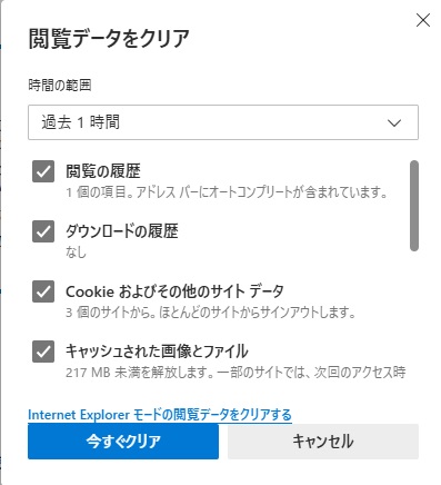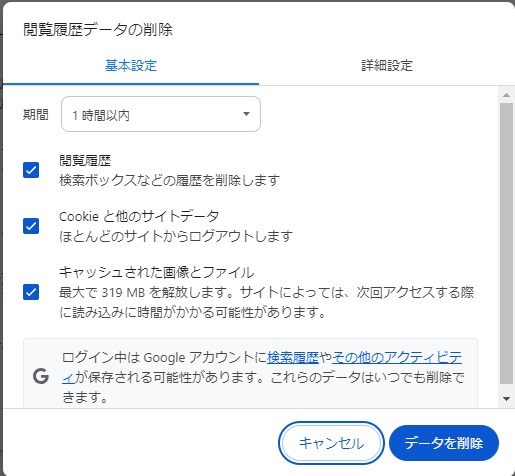 2.使用するブラウザによって異なりますが、「閲覧データをクリア」「閲覧履歴データの削除」などの画面になります。