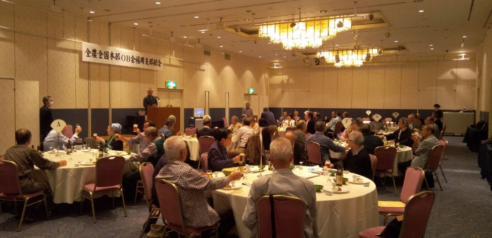 総会は、支部長の挨拶および支部会員の高齢化と組織運営について説明がありました。10年後には支部会員が140人を下回り、総会・年末懇親会、小旅行等は開催する規模に満たなくなると危機感が示されました。
