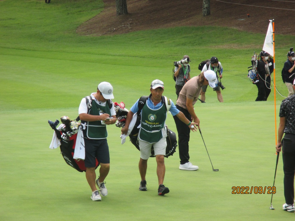 ピン横2メートル相当の場所にナイスショットでしたが、ややフックラインを読み過ぎてバーデイパットならずでした。今日は2オーバーでホールアウトでしたが不調でした。とは言え3年振りの登場ですので物凄い数のギャラリーを引き連れてのラウンドでした。何とか決勝ラウンドに残って貰いたいですね。